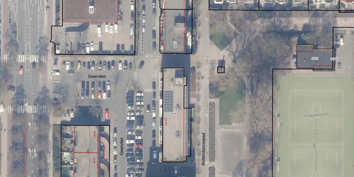 Het perceel waarop Geervliet 185 staat heeft een oppervlakte van 759 m². Dit is een groot perceel. De perceeloppervlakte wordt geregistreerd door het Kadaster. Gedetailleerde informatie over de maten van dit perceel kunt u vinden in het rapport Kadastrale kaart met maatvoering van Geervliet 185.