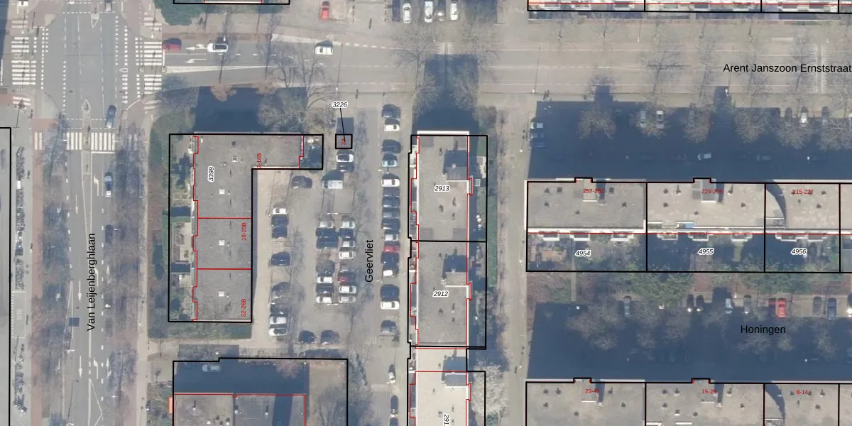 Het perceel waarop Geervliet 27 staat heeft een oppervlakte van 456 m². Dit is een groot perceel. De perceeloppervlakte wordt geregistreerd door het Kadaster. Gedetailleerde informatie over de maten van dit perceel kunt u vinden in het rapport Kadastrale kaart met maatvoering van Geervliet 27.