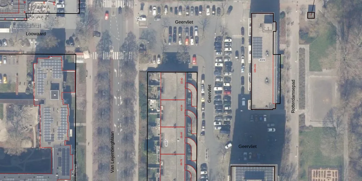 Het perceel waarop Geervliet 42 staat heeft een oppervlakte van 2083 m². Dit is een zeer groot perceel. De perceeloppervlakte wordt geregistreerd door het Kadaster. Gedetailleerde informatie over de maten van dit perceel kunt u vinden in het rapport Kadastrale kaart met maatvoering van Geervliet 42.