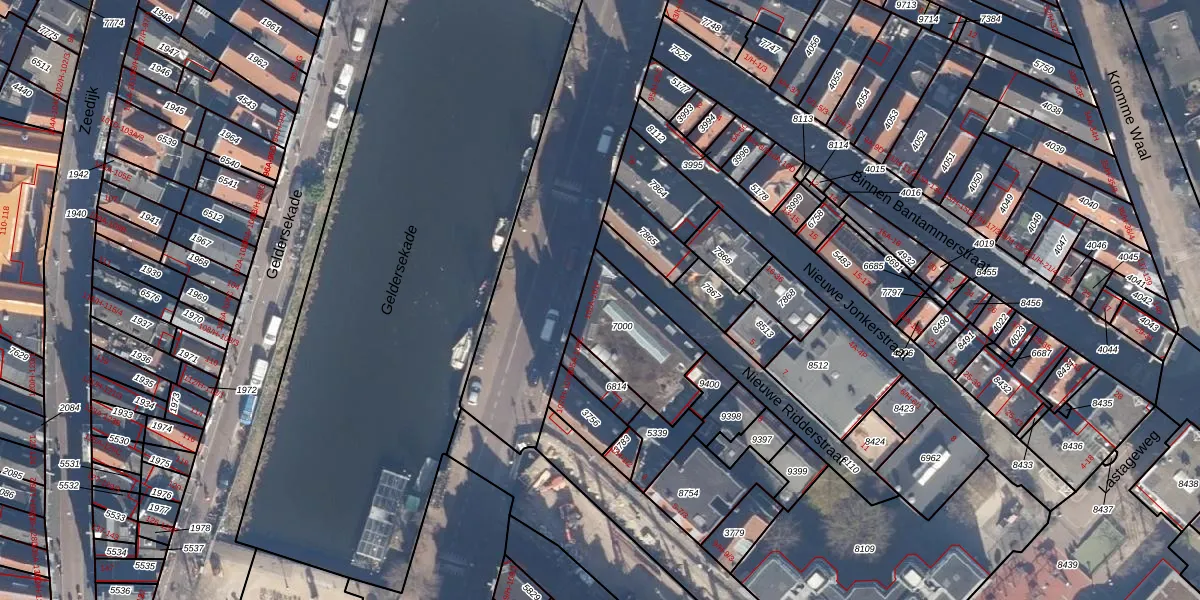 Geldersekade 101-B is gelegen op kadastraal perceel ASD05G7000. Deze kadastrale aanduiding is uniek en wordt gebruikt door het Kadaster om eigendomsrechten en andere zakelijke rechten vast te leggen. Het perceel maakt onderdeel uit van de kadastrale gemeente Amsterdam.