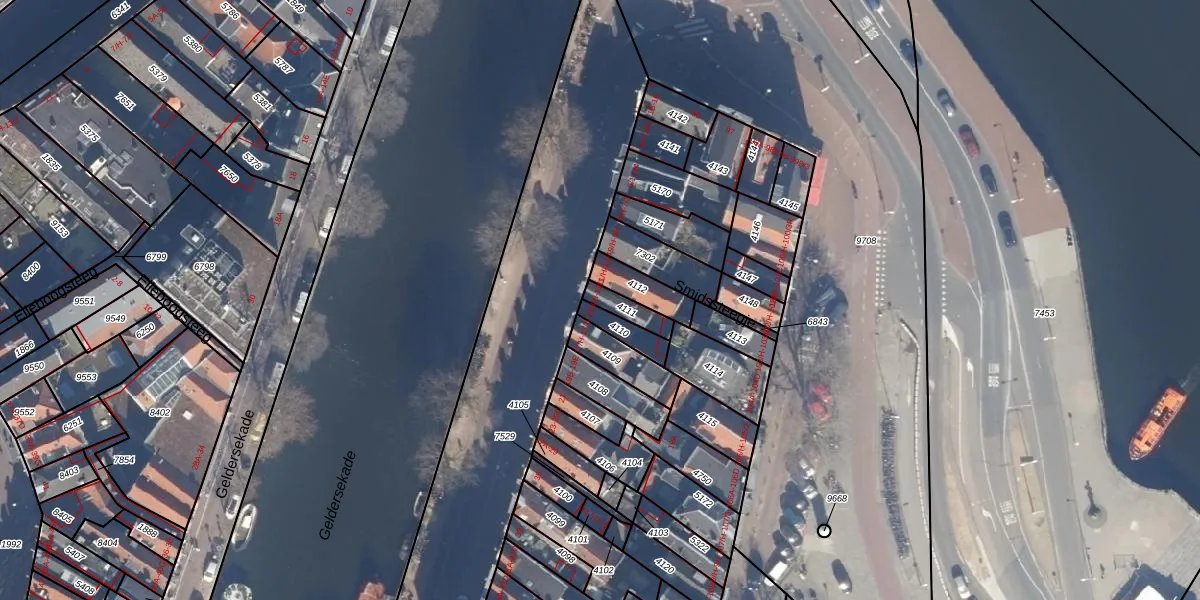 Geldersekade 13-H is gelegen op kadastraal perceel ASD05G4111. Deze kadastrale aanduiding is uniek en wordt gebruikt door het Kadaster om eigendomsrechten en andere zakelijke rechten vast te leggen. Het perceel maakt onderdeel uit van de kadastrale gemeente Amsterdam.