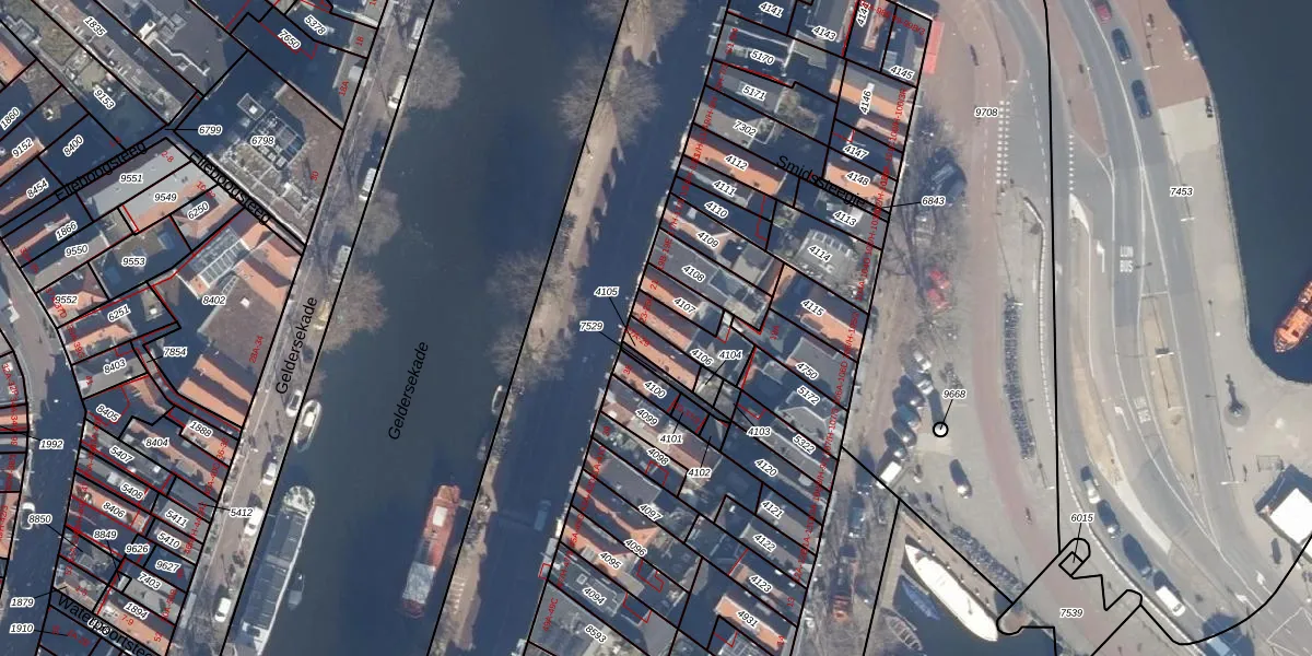 Geldersekade 25-A is gelegen op kadastraal perceel ASD05G4106. Deze kadastrale aanduiding is uniek en wordt gebruikt door het Kadaster om eigendomsrechten en andere zakelijke rechten vast te leggen. Het perceel maakt onderdeel uit van de kadastrale gemeente Amsterdam.