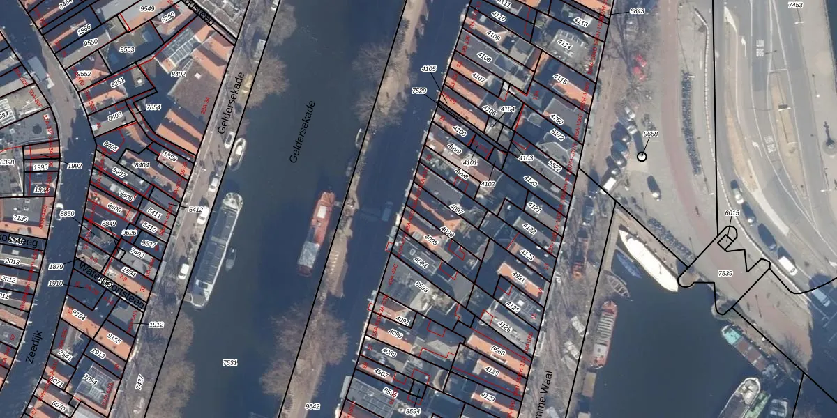 Geldersekade 43-A is gelegen op kadastraal perceel ASD05G4096. Deze kadastrale aanduiding is uniek en wordt gebruikt door het Kadaster om eigendomsrechten en andere zakelijke rechten vast te leggen. Het perceel maakt onderdeel uit van de kadastrale gemeente Amsterdam.