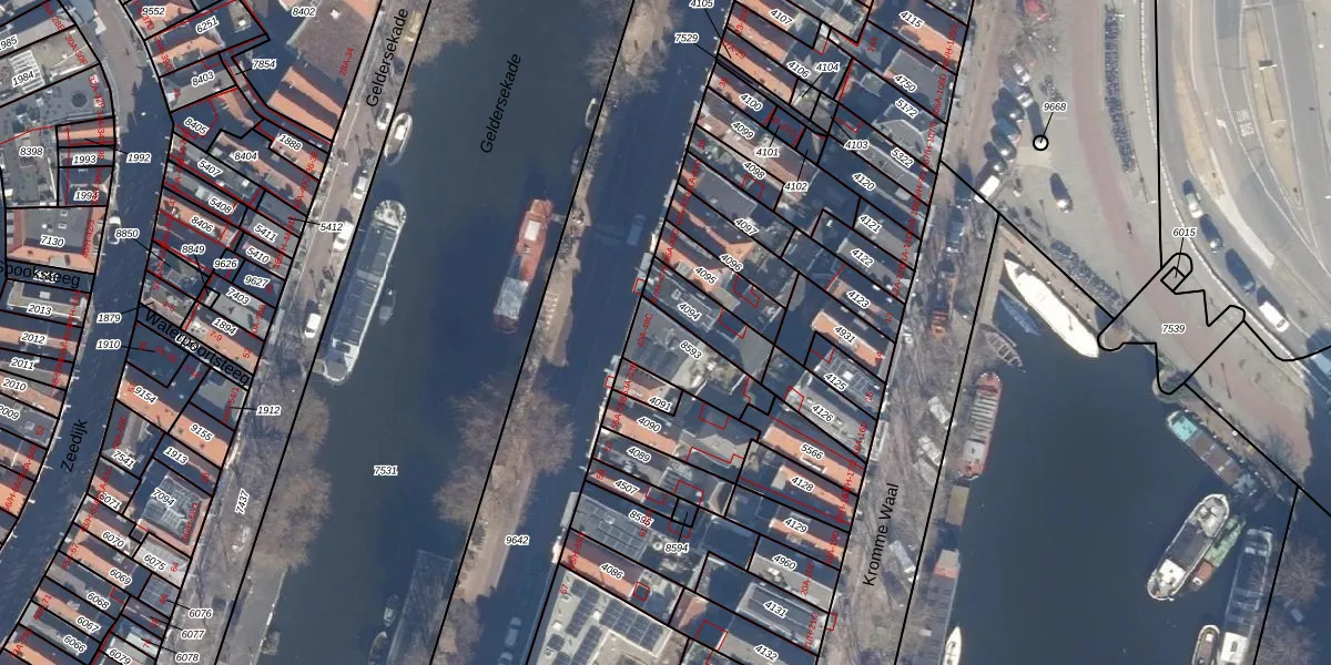 Geldersekade 49-B is gelegen op kadastraal perceel ASD05G8593. Deze kadastrale aanduiding is uniek en wordt gebruikt door het Kadaster om eigendomsrechten en andere zakelijke rechten vast te leggen. Het perceel maakt onderdeel uit van de kadastrale gemeente Amsterdam.