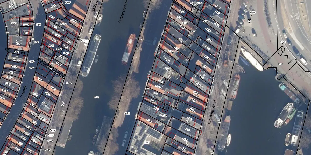Geldersekade 53-B is gelegen op kadastraal perceel ASD05G4091. Deze kadastrale aanduiding is uniek en wordt gebruikt door het Kadaster om eigendomsrechten en andere zakelijke rechten vast te leggen. Het perceel maakt onderdeel uit van de kadastrale gemeente Amsterdam.