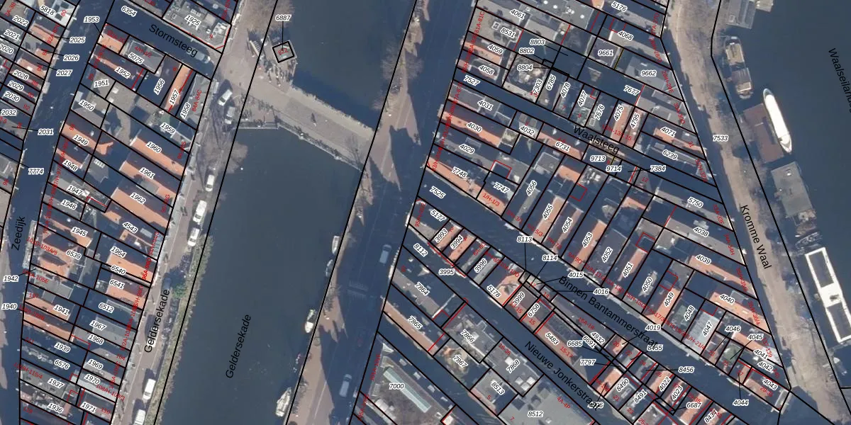 Het perceel waarop Geldersekade 95-H staat heeft een oppervlakte van 43 m². Dit is een klein perceel. De perceeloppervlakte wordt geregistreerd door het Kadaster. Gedetailleerde informatie over de maten van dit perceel kunt u vinden in het rapport Kadastrale kaart met maatvoering van Geldersekade 95-H.