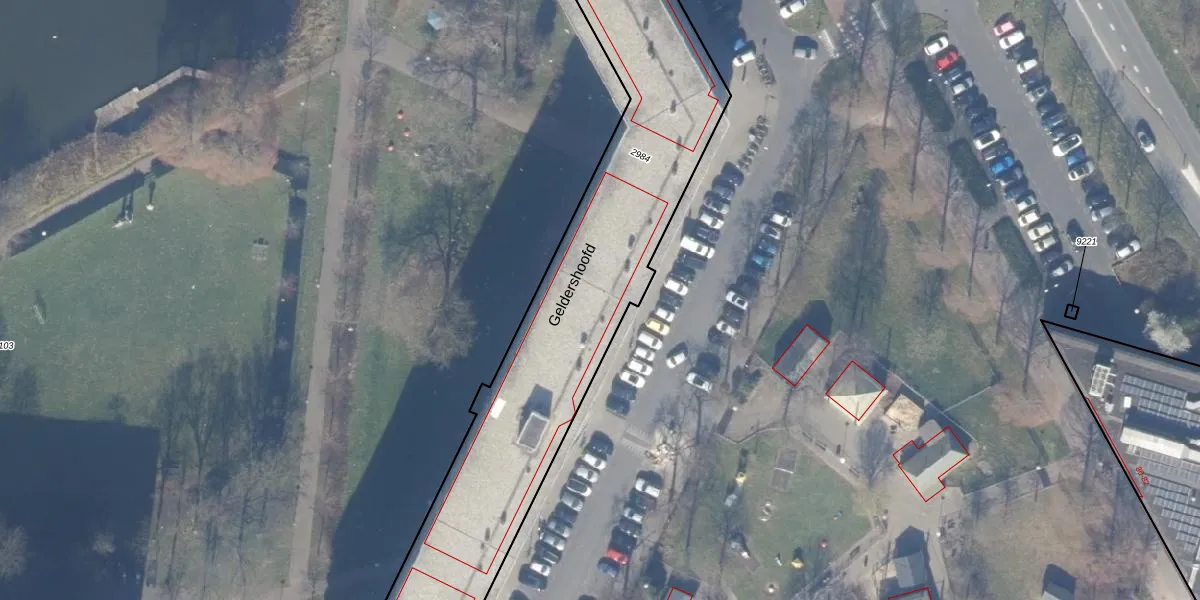 Het perceel waarop Geldershoofd 119 staat heeft een oppervlakte van 5300 m². Dit is een zeer groot perceel. De perceeloppervlakte wordt geregistreerd door het Kadaster. Gedetailleerde informatie over de maten van dit perceel kunt u vinden in het rapport Kadastrale kaart met maatvoering van Geldershoofd 119.