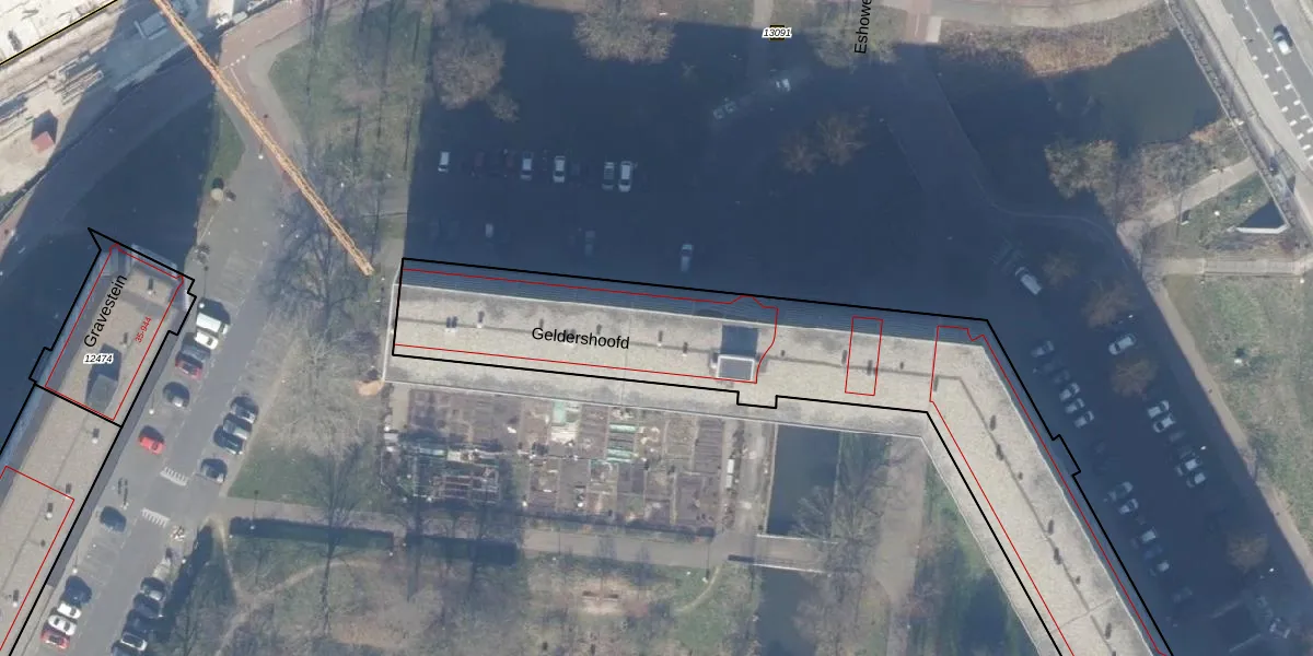 Het perceel waarop Geldershoofd 245 staat heeft een oppervlakte van 5300 m². Dit is een zeer groot perceel. De perceeloppervlakte wordt geregistreerd door het Kadaster. Gedetailleerde informatie over de maten van dit perceel kunt u vinden in het rapport Kadastrale kaart met maatvoering van Geldershoofd 245.