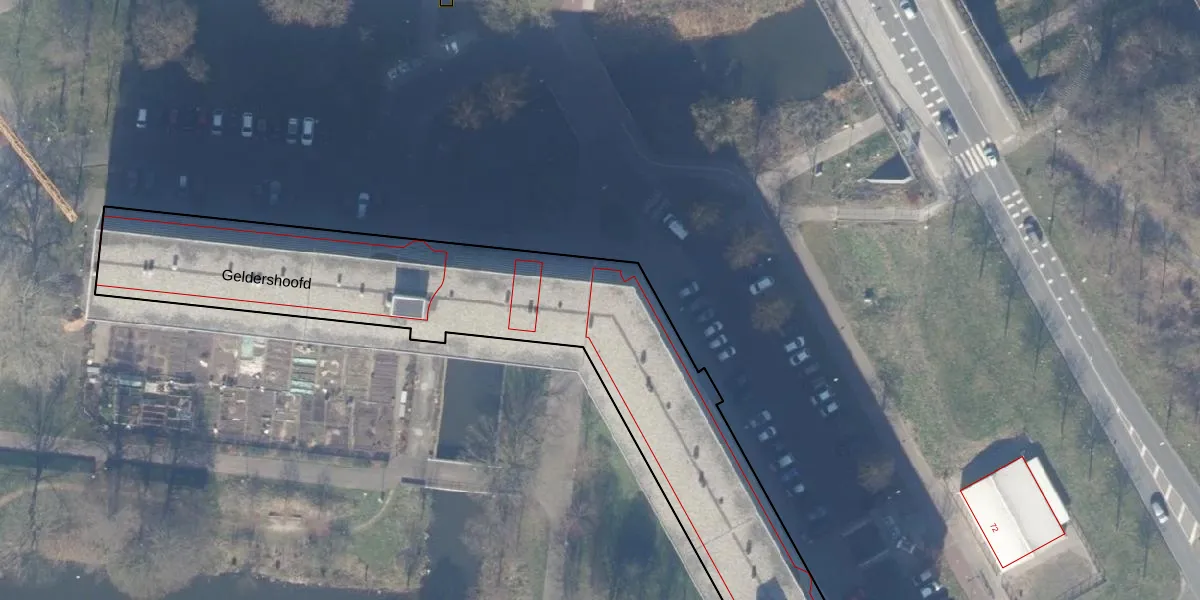 Het perceel waarop Geldershoofd 339 staat heeft een oppervlakte van 5300 m². Dit is een zeer groot perceel. De perceeloppervlakte wordt geregistreerd door het Kadaster. Gedetailleerde informatie over de maten van dit perceel kunt u vinden in het rapport Kadastrale kaart met maatvoering van Geldershoofd 339.