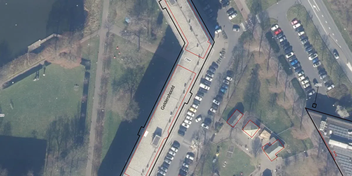 Het perceel waarop Geldershoofd 420 staat heeft een oppervlakte van 5300 m². Dit is een zeer groot perceel. De perceeloppervlakte wordt geregistreerd door het Kadaster. Gedetailleerde informatie over de maten van dit perceel kunt u vinden in het rapport Kadastrale kaart met maatvoering van Geldershoofd 420.