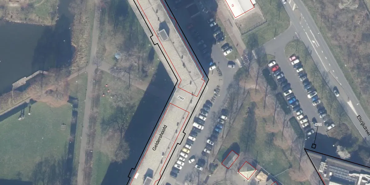 Het perceel waarop Geldershoofd 423 staat heeft een oppervlakte van 5300 m². Dit is een zeer groot perceel. De perceeloppervlakte wordt geregistreerd door het Kadaster. Gedetailleerde informatie over de maten van dit perceel kunt u vinden in het rapport Kadastrale kaart met maatvoering van Geldershoofd 423.