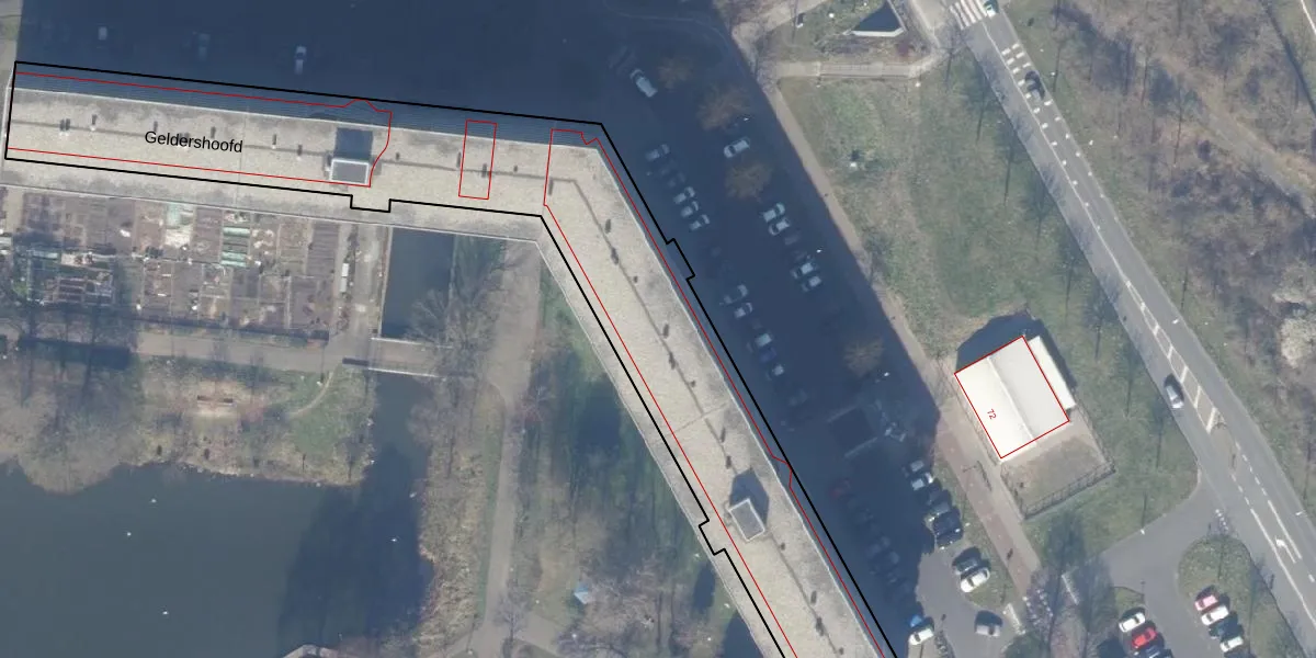 Het perceel waarop Geldershoofd 434 staat heeft een oppervlakte van 5300 m². Dit is een zeer groot perceel. De perceeloppervlakte wordt geregistreerd door het Kadaster. Gedetailleerde informatie over de maten van dit perceel kunt u vinden in het rapport Kadastrale kaart met maatvoering van Geldershoofd 434.