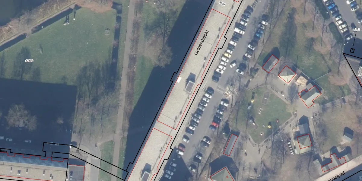 Het perceel waarop Geldershoofd 615 staat heeft een oppervlakte van 5300 m². Dit is een zeer groot perceel. De perceeloppervlakte wordt geregistreerd door het Kadaster. Gedetailleerde informatie over de maten van dit perceel kunt u vinden in het rapport Kadastrale kaart met maatvoering van Geldershoofd 615.