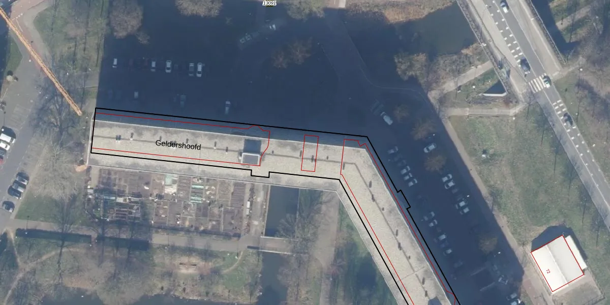 Het perceel waarop Geldershoofd 641 staat heeft een oppervlakte van 5300 m². Dit is een zeer groot perceel. De perceeloppervlakte wordt geregistreerd door het Kadaster. Gedetailleerde informatie over de maten van dit perceel kunt u vinden in het rapport Kadastrale kaart met maatvoering van Geldershoofd 641.