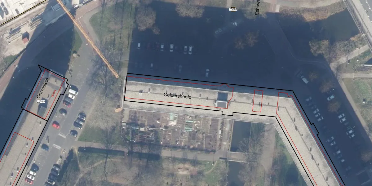Het perceel waarop Geldershoofd 646 staat heeft een oppervlakte van 5300 m². Dit is een zeer groot perceel. De perceeloppervlakte wordt geregistreerd door het Kadaster. Gedetailleerde informatie over de maten van dit perceel kunt u vinden in het rapport Kadastrale kaart met maatvoering van Geldershoofd 646.