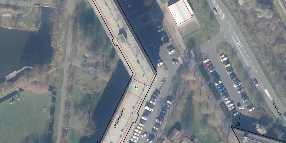Het perceel waarop Geldershoofd 725 staat heeft een oppervlakte van 5300 m². Dit is een zeer groot perceel. De perceeloppervlakte wordt geregistreerd door het Kadaster. Gedetailleerde informatie over de maten van dit perceel kunt u vinden in het rapport Kadastrale kaart met maatvoering van Geldershoofd 725.