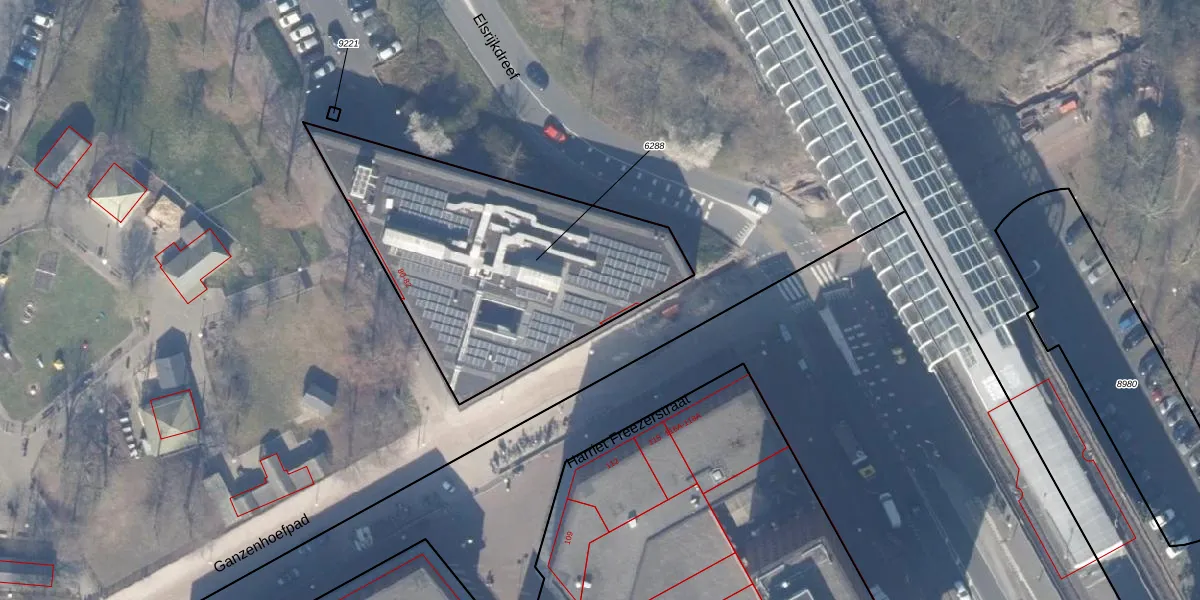 Het perceel waarop Geldershoofd 82 staat heeft een oppervlakte van 1407 m². Dit is een zeer groot perceel. De perceeloppervlakte wordt geregistreerd door het Kadaster. Gedetailleerde informatie over de maten van dit perceel kunt u vinden in het rapport Kadastrale kaart met maatvoering van Geldershoofd 82.