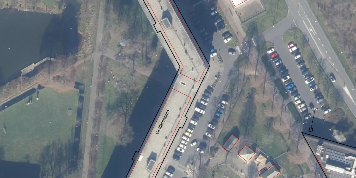 Het perceel waarop Geldershoofd 822 staat heeft een oppervlakte van 5300 m². Dit is een zeer groot perceel. De perceeloppervlakte wordt geregistreerd door het Kadaster. Gedetailleerde informatie over de maten van dit perceel kunt u vinden in het rapport Kadastrale kaart met maatvoering van Geldershoofd 822.