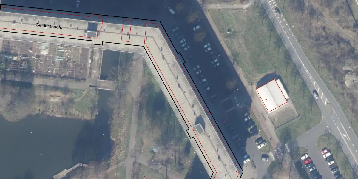 Het perceel waarop Geldershoofd 833 staat heeft een oppervlakte van 5300 m². Dit is een zeer groot perceel. De perceeloppervlakte wordt geregistreerd door het Kadaster. Gedetailleerde informatie over de maten van dit perceel kunt u vinden in het rapport Kadastrale kaart met maatvoering van Geldershoofd 833.