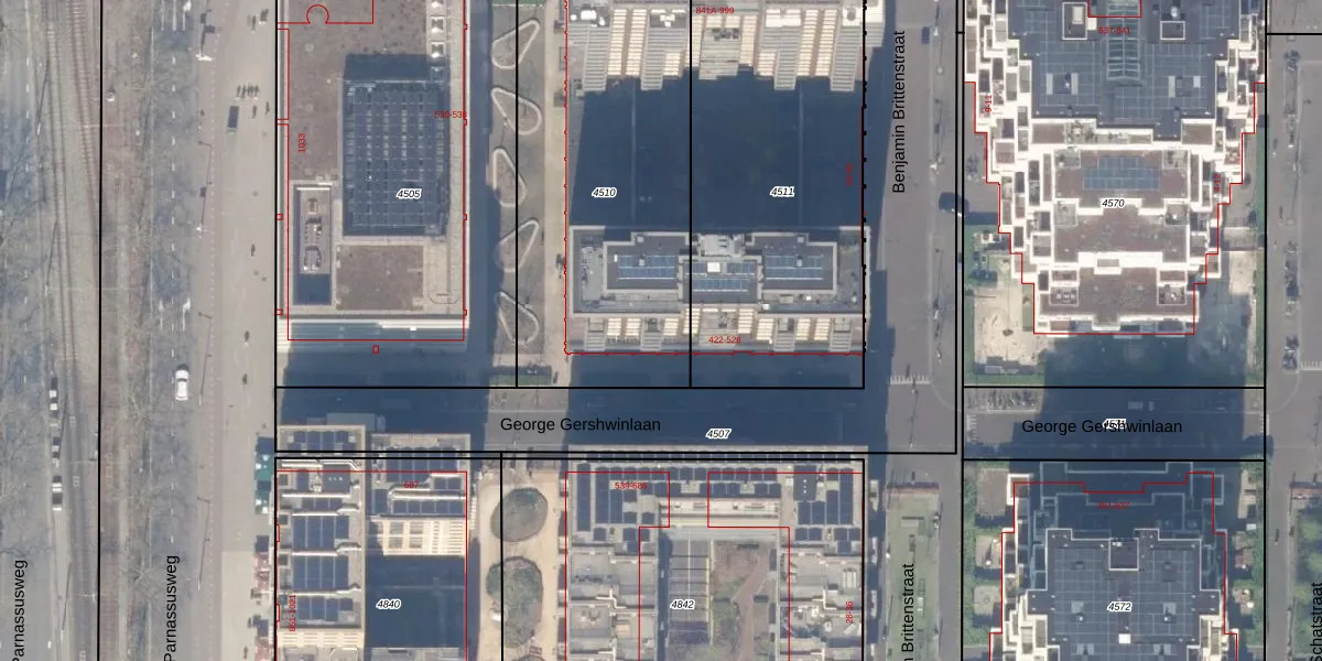 Het perceel waarop George Gershwinlaan 430 staat heeft een oppervlakte van 1555 m². Dit is een zeer groot perceel. De perceeloppervlakte wordt geregistreerd door het Kadaster. Gedetailleerde informatie over de maten van dit perceel kunt u vinden in het rapport Kadastrale kaart met maatvoering van George Gershwinlaan 430.