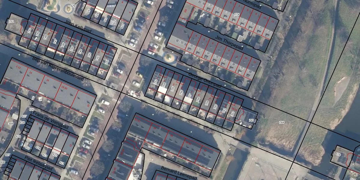 Het perceel waarop George Ortonpad 4 staat heeft een oppervlakte van 95 m². Dit is een klein perceel. De perceeloppervlakte wordt geregistreerd door het Kadaster. Gedetailleerde informatie over de maten van dit perceel kunt u vinden in het rapport Kadastrale kaart met maatvoering van George Ortonpad 4.
