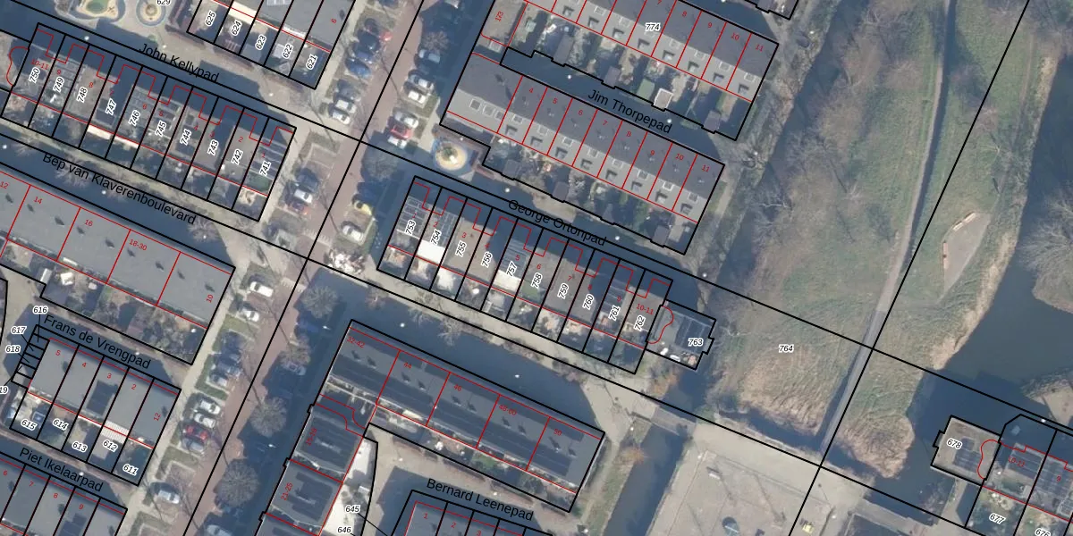 Het perceel waarop George Ortonpad 6 staat heeft een oppervlakte van 95 m². Dit is een klein perceel. De perceeloppervlakte wordt geregistreerd door het Kadaster. Gedetailleerde informatie over de maten van dit perceel kunt u vinden in het rapport Kadastrale kaart met maatvoering van George Ortonpad 6.