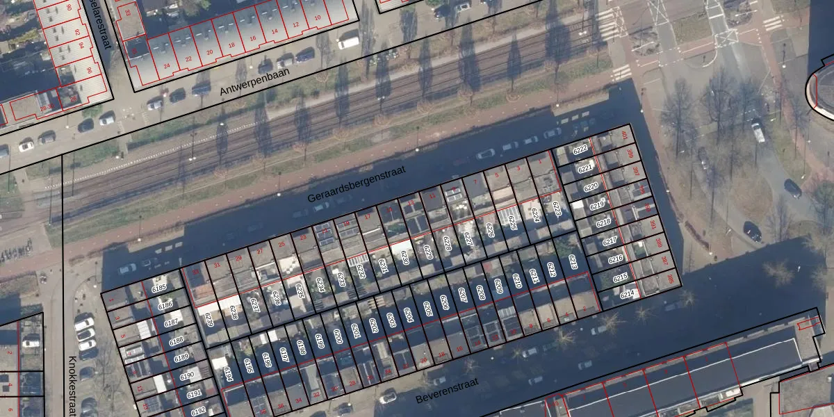 Geraardsbergenstraat 13 is gelegen op kadastraal perceel STN02E6229. Deze kadastrale aanduiding is uniek en wordt gebruikt door het Kadaster om eigendomsrechten en andere zakelijke rechten vast te leggen. Het perceel maakt onderdeel uit van de kadastrale gemeente Sloten Noord-Holland.