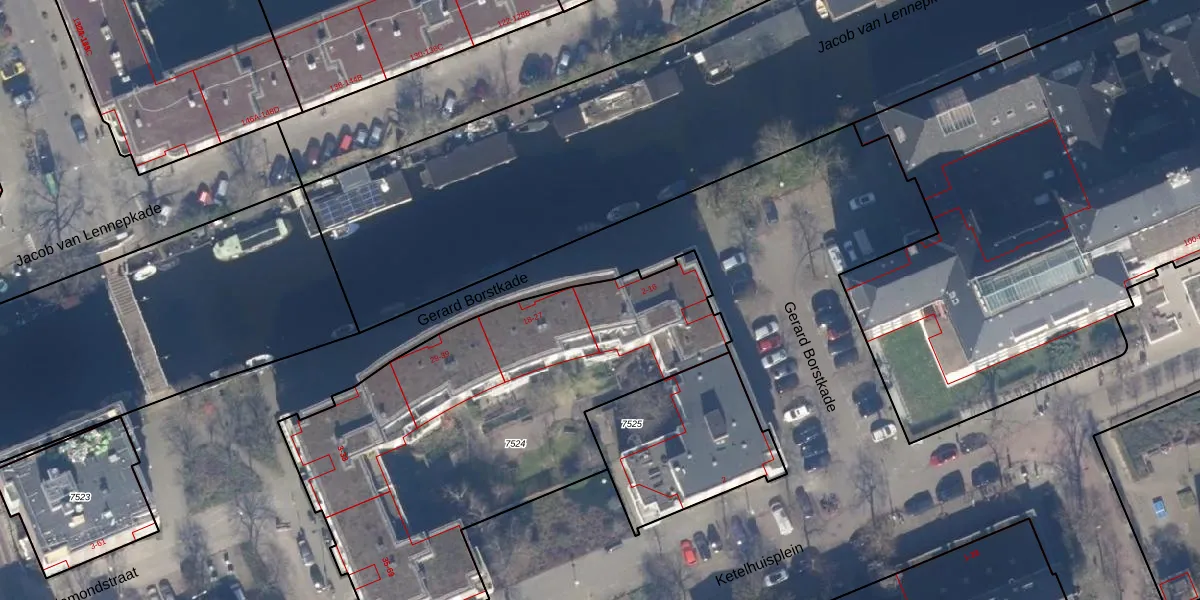Gerard Borstkade 15 is gelegen op kadastraal perceel ASD13Q7524. Deze kadastrale aanduiding is uniek en wordt gebruikt door het Kadaster om eigendomsrechten en andere zakelijke rechten vast te leggen. Het perceel maakt onderdeel uit van de kadastrale gemeente Amsterdam.