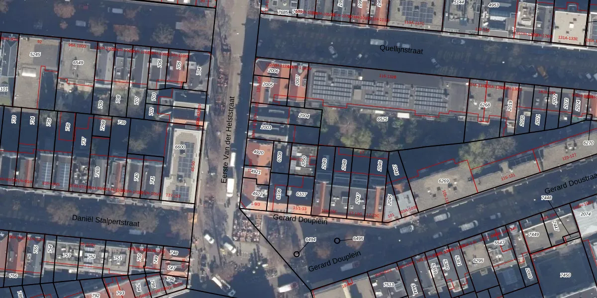 Het perceel waarop Gerard Douplein 5-H staat heeft een oppervlakte van 95 m². Dit is een klein perceel. De perceeloppervlakte wordt geregistreerd door het Kadaster. Gedetailleerde informatie over de maten van dit perceel kunt u vinden in het rapport Kadastrale kaart met maatvoering van Gerard Douplein 5-H.