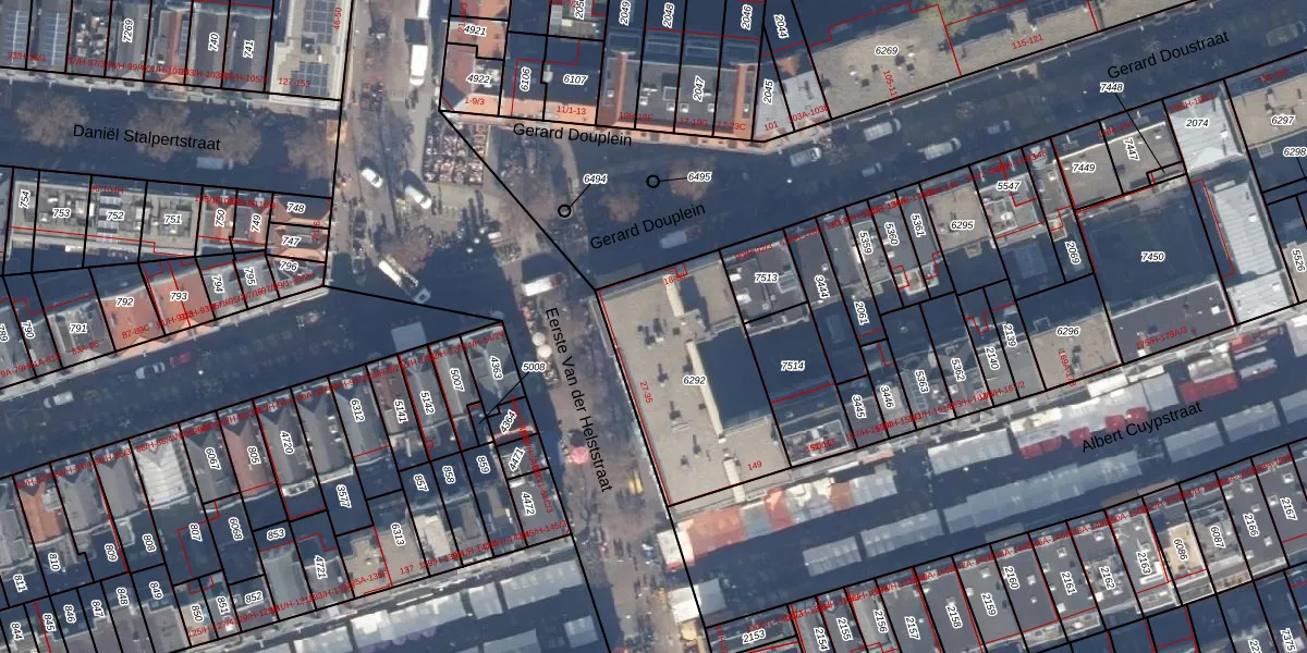 Het perceel waarop Gerard Douplein 84 staat heeft een oppervlakte van 699 m². Dit is een groot perceel. De perceeloppervlakte wordt geregistreerd door het Kadaster. Gedetailleerde informatie over de maten van dit perceel kunt u vinden in het rapport Kadastrale kaart met maatvoering van Gerard Douplein 84.