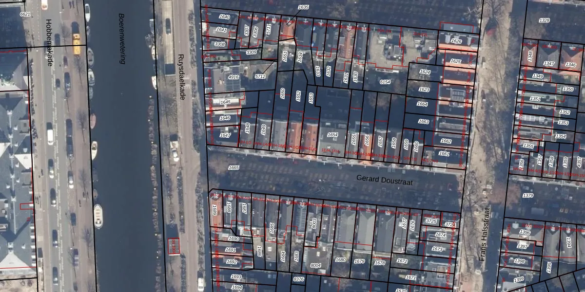 Gerard Doustraat 1-C-H is gelegen op kadastraal perceel ASD14R1652. Deze kadastrale aanduiding is uniek en wordt gebruikt door het Kadaster om eigendomsrechten en andere zakelijke rechten vast te leggen. Het perceel maakt onderdeel uit van de kadastrale gemeente Amsterdam.