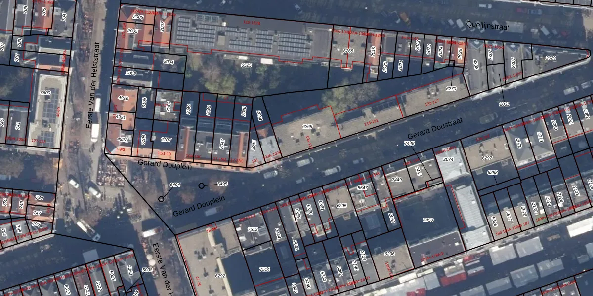 Gerard Doustraat 107-B is gelegen op kadastraal perceel ASD14R6269. Deze kadastrale aanduiding is uniek en wordt gebruikt door het Kadaster om eigendomsrechten en andere zakelijke rechten vast te leggen. Het perceel maakt onderdeel uit van de kadastrale gemeente Amsterdam.