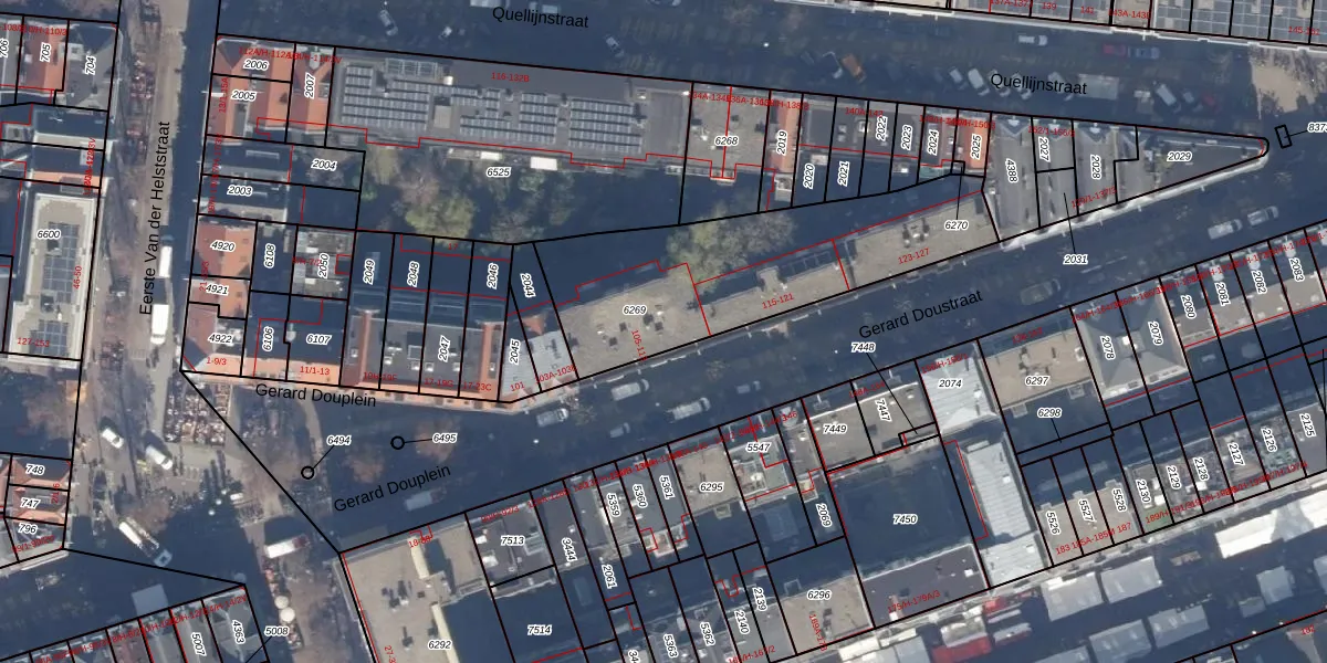Gerard Doustraat 111-B is gelegen op kadastraal perceel ASD14R6269. Deze kadastrale aanduiding is uniek en wordt gebruikt door het Kadaster om eigendomsrechten en andere zakelijke rechten vast te leggen. Het perceel maakt onderdeel uit van de kadastrale gemeente Amsterdam.