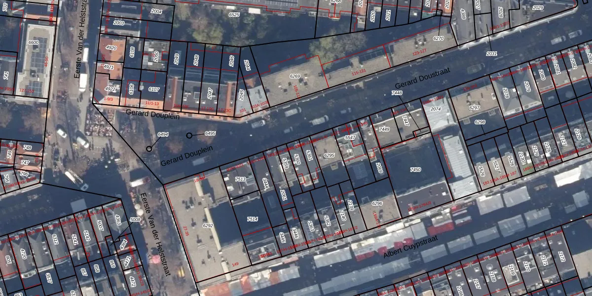 Gerard Doustraat 134-1 is gelegen op kadastraal perceel ASD14R5360. Deze kadastrale aanduiding is uniek en wordt gebruikt door het Kadaster om eigendomsrechten en andere zakelijke rechten vast te leggen. Het perceel maakt onderdeel uit van de kadastrale gemeente Amsterdam.
