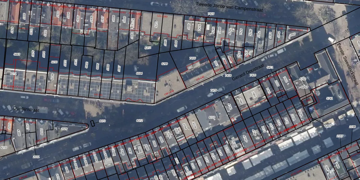 Het perceel waarop Gerard Doustraat 143-C staat heeft een oppervlakte van 320 m². Dit is een groot perceel. De perceeloppervlakte wordt geregistreerd door het Kadaster. Gedetailleerde informatie over de maten van dit perceel kunt u vinden in het rapport Kadastrale kaart met maatvoering van Gerard Doustraat 143-C.