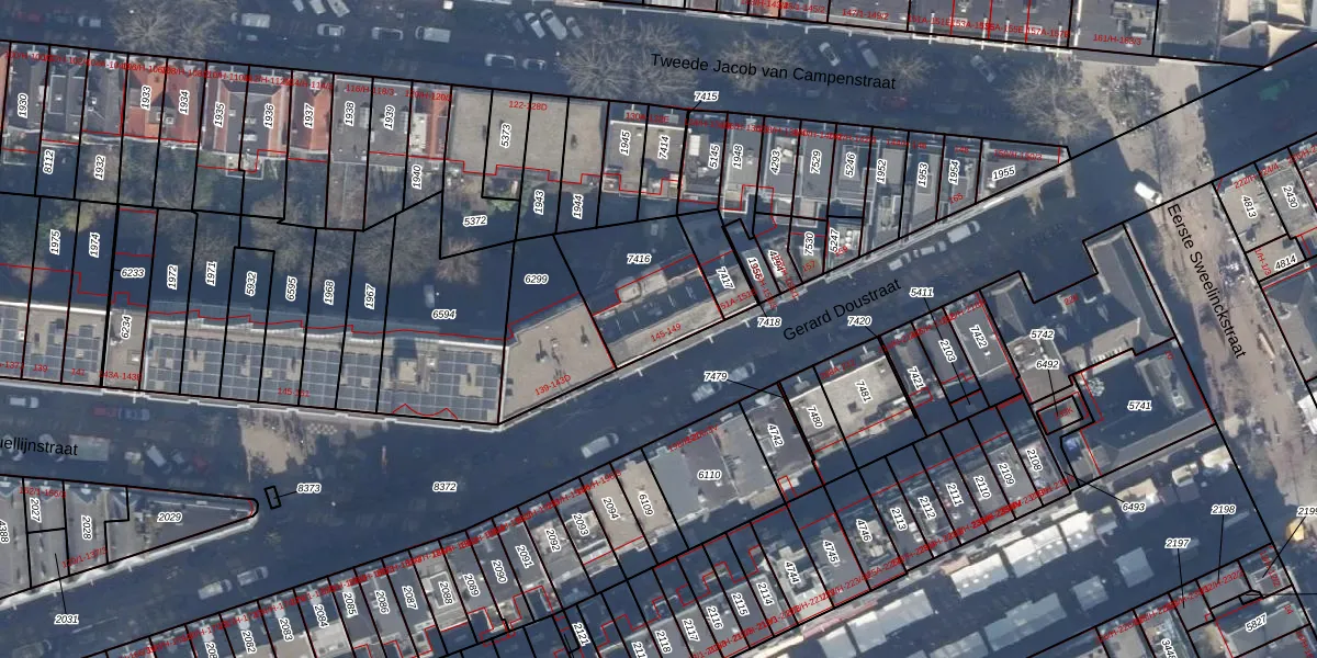 Het perceel waarop Gerard Doustraat 147-B staat heeft een oppervlakte van 357 m². Dit is een groot perceel. De perceeloppervlakte wordt geregistreerd door het Kadaster. Gedetailleerde informatie over de maten van dit perceel kunt u vinden in het rapport Kadastrale kaart met maatvoering van Gerard Doustraat 147-B.