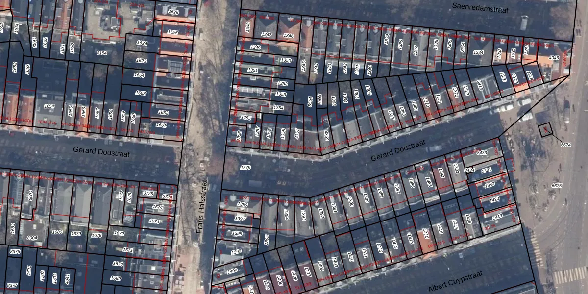 Het perceel waarop Gerard Doustraat 15-H staat heeft een oppervlakte van 76 m². Dit is een klein perceel. De perceeloppervlakte wordt geregistreerd door het Kadaster. Gedetailleerde informatie over de maten van dit perceel kunt u vinden in het rapport Kadastrale kaart met maatvoering van Gerard Doustraat 15-H.