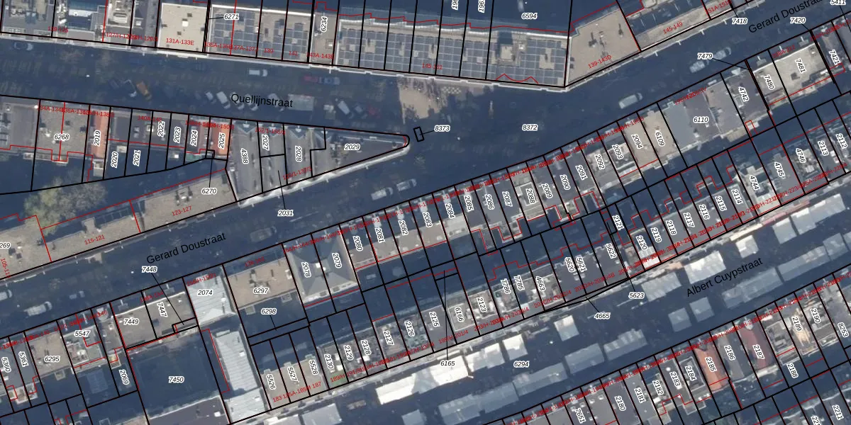 Het perceel waarop Gerard Doustraat 174-2 staat heeft een oppervlakte van 95 m². Dit is een klein perceel. De perceeloppervlakte wordt geregistreerd door het Kadaster. Gedetailleerde informatie over de maten van dit perceel kunt u vinden in het rapport Kadastrale kaart met maatvoering van Gerard Doustraat 174-2.