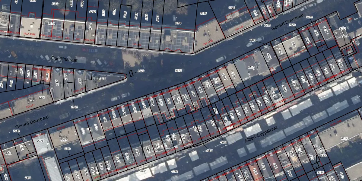 Het perceel waarop Gerard Doustraat 186-3 staat heeft een oppervlakte van 74 m². Dit is een klein perceel. De perceeloppervlakte wordt geregistreerd door het Kadaster. Gedetailleerde informatie over de maten van dit perceel kunt u vinden in het rapport Kadastrale kaart met maatvoering van Gerard Doustraat 186-3.