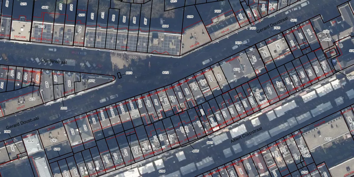 Het perceel waarop Gerard Doustraat 188-H staat heeft een oppervlakte van 73 m². Dit is een klein perceel. De perceeloppervlakte wordt geregistreerd door het Kadaster. Gedetailleerde informatie over de maten van dit perceel kunt u vinden in het rapport Kadastrale kaart met maatvoering van Gerard Doustraat 188-H.