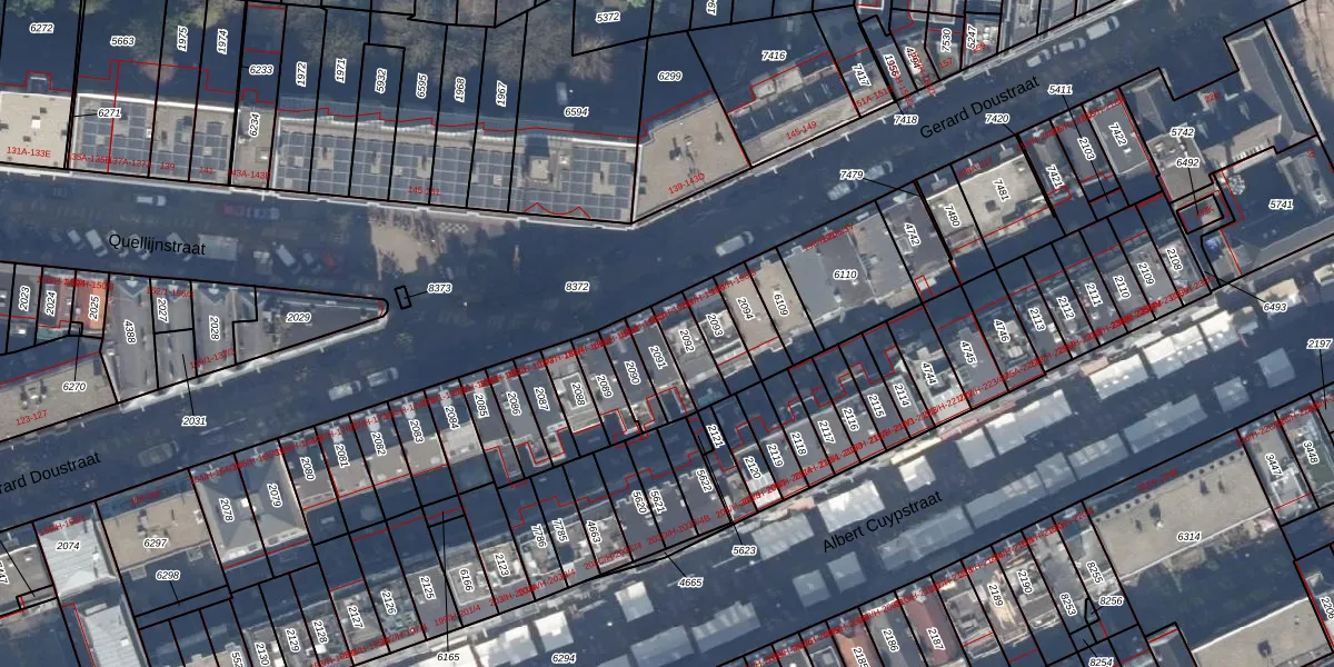 Het perceel waarop Gerard Doustraat 192-2 staat heeft een oppervlakte van 90 m². Dit is een klein perceel. De perceeloppervlakte wordt geregistreerd door het Kadaster. Gedetailleerde informatie over de maten van dit perceel kunt u vinden in het rapport Kadastrale kaart met maatvoering van Gerard Doustraat 192-2.