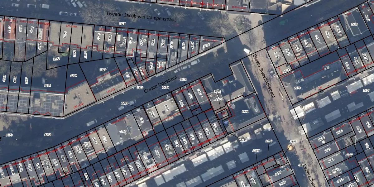 Het perceel waarop Gerard Doustraat 216-1 staat heeft een oppervlakte van 72 m². Dit is een klein perceel. De perceeloppervlakte wordt geregistreerd door het Kadaster. Gedetailleerde informatie over de maten van dit perceel kunt u vinden in het rapport Kadastrale kaart met maatvoering van Gerard Doustraat 216-1.