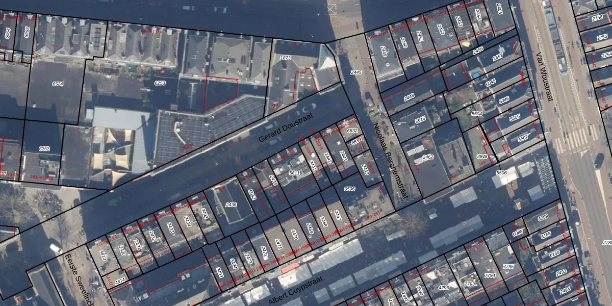 Het perceel waarop Gerard Doustraat 250-2 staat heeft een oppervlakte van 68 m². Dit is een klein perceel. De perceeloppervlakte wordt geregistreerd door het Kadaster. Gedetailleerde informatie over de maten van dit perceel kunt u vinden in het rapport Kadastrale kaart met maatvoering van Gerard Doustraat 250-2.
