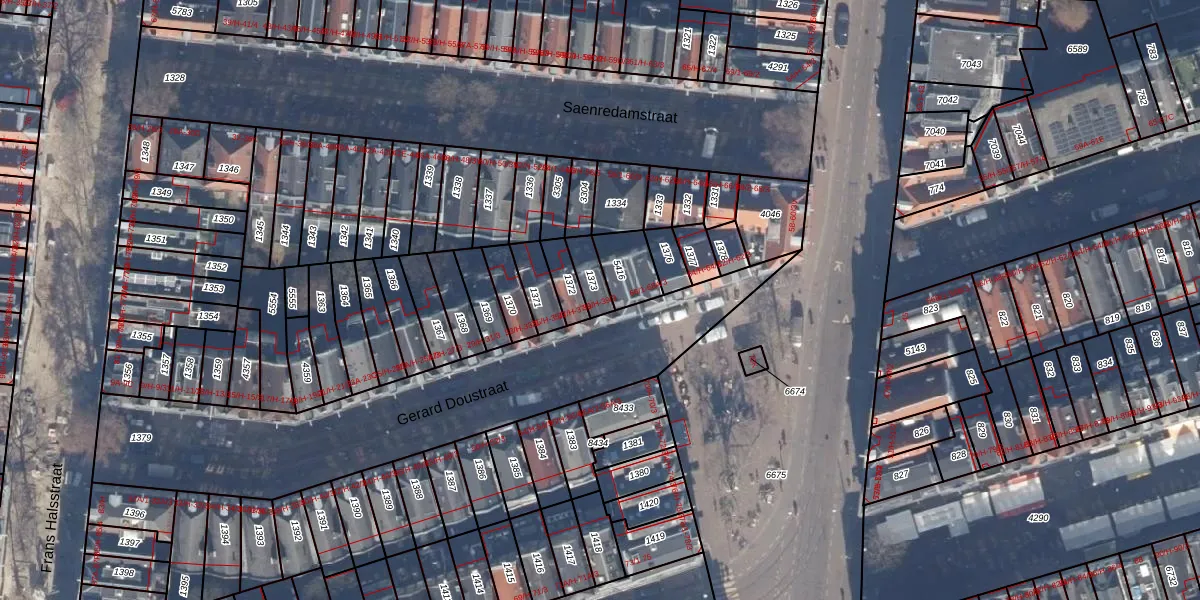 Het perceel waarop Gerard Doustraat 39-H staat heeft een oppervlakte van 54 m². Dit is een klein perceel. De perceeloppervlakte wordt geregistreerd door het Kadaster. Gedetailleerde informatie over de maten van dit perceel kunt u vinden in het rapport Kadastrale kaart met maatvoering van Gerard Doustraat 39-H.