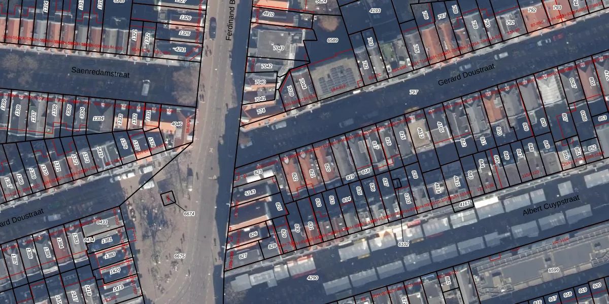 Het adres is gelegen op perceel 821 in de sectie R en de kadastrale gemeente Amsterdam. De kadastrale aanduiding is aldus ASD14-R-821. Het perceel is 91 m² groot. Dat is kleiner dan de gemiddelde perceeloppervlakte in Amsterdam, dat op 354,38 m² ligt. Het kleinste perceel in de kadastrale gemeente is 0 m² groot. De grootste perceeloppervlakte is 9,9 ha. Er zijn 5 adressen aanwezig op het perceel. De huidige grenzen van het perceel zijn digitaal in de Basisregistratie Kadaster (BRK) geregistreerd op 10-10-2006.