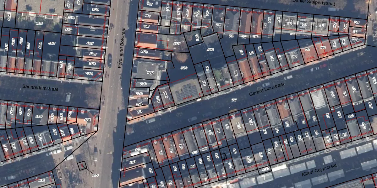 Het perceel waarop Gerard Doustraat 61-A staat heeft een oppervlakte van 380 m². Dit is een groot perceel. De perceeloppervlakte wordt geregistreerd door het Kadaster. Gedetailleerde informatie over de maten van dit perceel kunt u vinden in het rapport Kadastrale kaart met maatvoering van Gerard Doustraat 61-A.