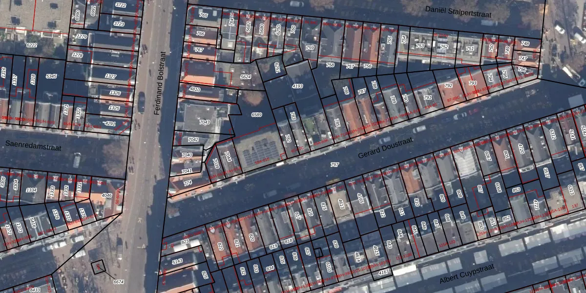 Het perceel waarop Gerard Doustraat 65 staat heeft een oppervlakte van 73 m². Dit is een klein perceel. De perceeloppervlakte wordt geregistreerd door het Kadaster. Gedetailleerde informatie over de maten van dit perceel kunt u vinden in het rapport Kadastrale kaart met maatvoering van Gerard Doustraat 65.