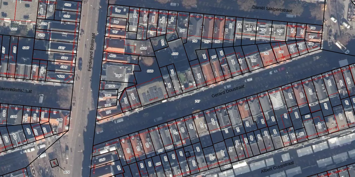 Het perceel waarop Gerard Doustraat 67-B staat heeft een oppervlakte van 77 m². Dit is een klein perceel. De perceeloppervlakte wordt geregistreerd door het Kadaster. Gedetailleerde informatie over de maten van dit perceel kunt u vinden in het rapport Kadastrale kaart met maatvoering van Gerard Doustraat 67-B.