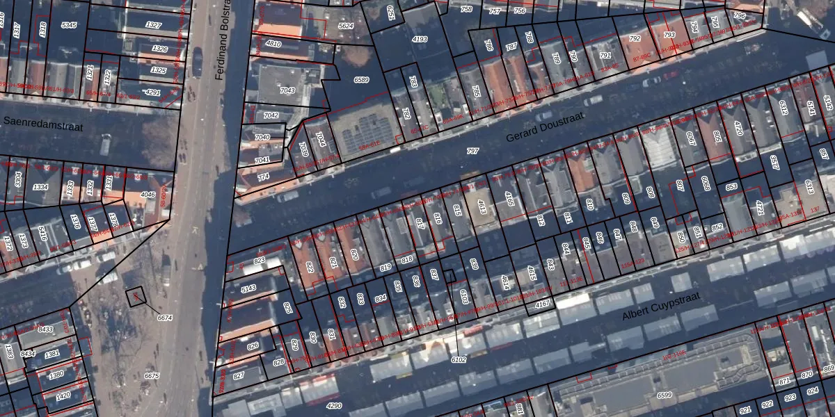 Het perceel waarop Gerard Doustraat 68-H staat heeft een oppervlakte van 77 m². Dit is een klein perceel. De perceeloppervlakte wordt geregistreerd door het Kadaster. Gedetailleerde informatie over de maten van dit perceel kunt u vinden in het rapport Kadastrale kaart met maatvoering van Gerard Doustraat 68-H.