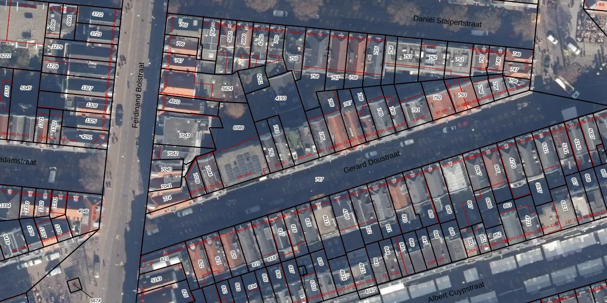 Het perceel waarop Gerard Doustraat 69-B staat heeft een oppervlakte van 337 m². Dit is een groot perceel. De perceeloppervlakte wordt geregistreerd door het Kadaster. Gedetailleerde informatie over de maten van dit perceel kunt u vinden in het rapport Kadastrale kaart met maatvoering van Gerard Doustraat 69-B.
